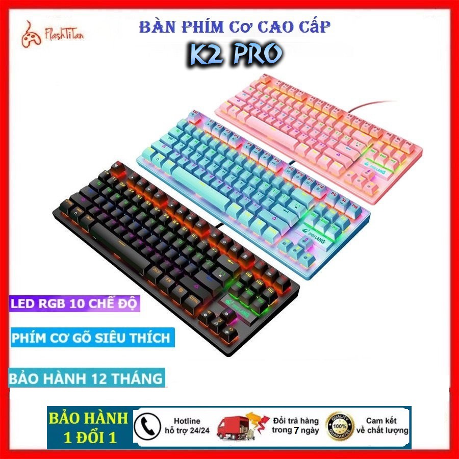 Bàn Phím Cơ Máy Tính K2 Pro Led RGB - Bàn Phím Cơ Chuyên Game Blue Switch Có 10 Chế Độ Màu - Bảo hành 12 tháng free ship